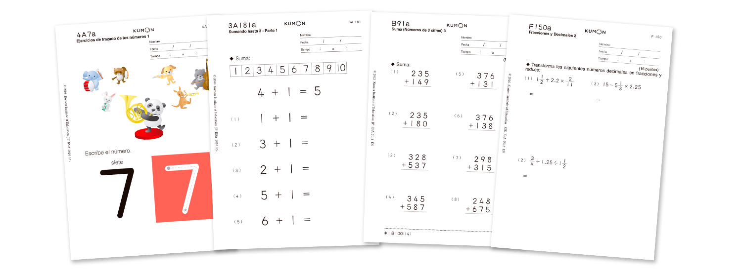 En Kumon, el niño aprende todos los fundamentos lógicos en la realización de cálculos. Al desarrollar sus habilidades progresivamente, tu hijo tendrá la confianza y el conocimiento para realizar cálculos de la más alta complejidad.